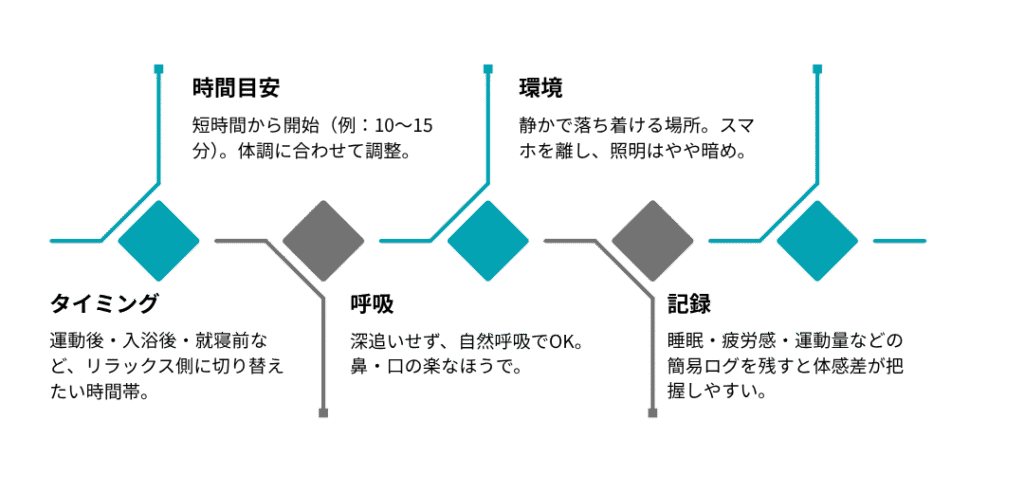 練習後・試合後のクールダウン時間に吸入を取り入れ、回復モードへの切り替えをルーティン化。翌日の動きやすさをサポート。